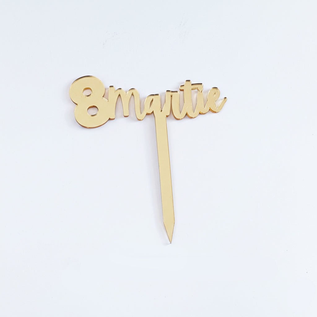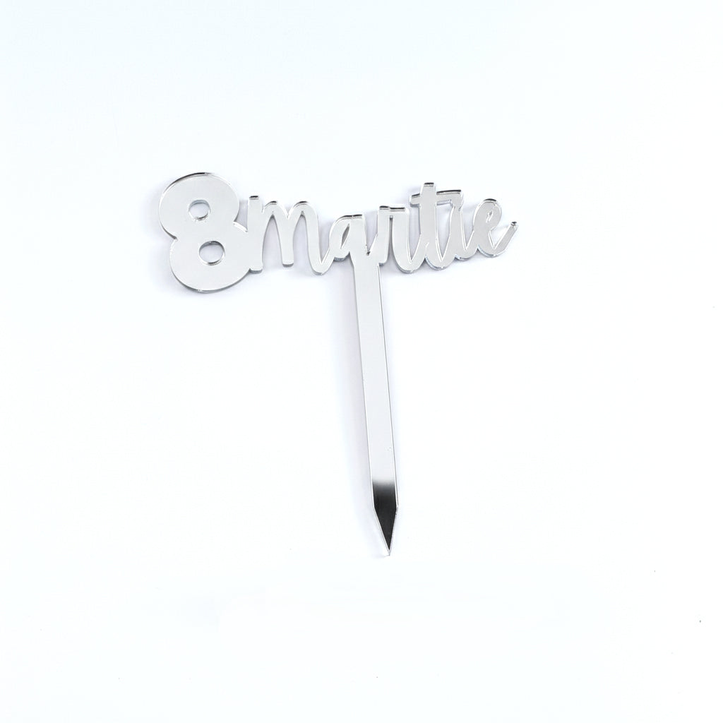 Personalizează cu precizie aranjamentele tale compacte folosind topper-ul „8 Martie” cu tijă scurtă, un accesoriu premium din plexiglas oglindă, proiectat special pentru cutii cu flori și creații florale de dimensiuni reduse.