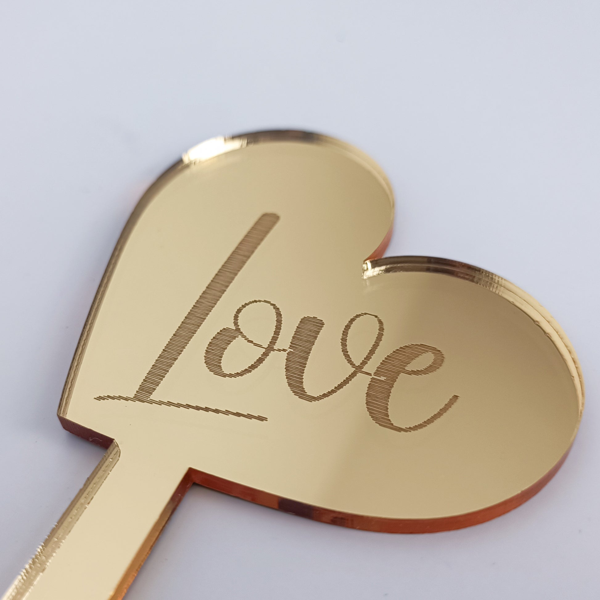 Design: Formă de inimă cu gravură laser fină a cuvântului „Love”.