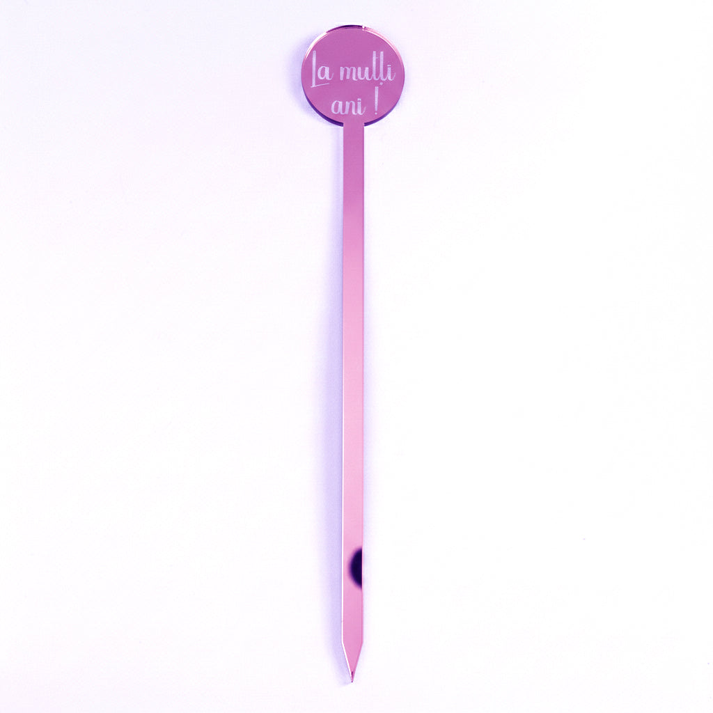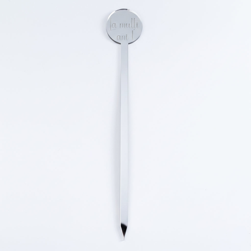 Completează orice tip de cadou sau aranjament festiv cu topper-ul universal „La mulți ani!”, un accesoriu premium din plexiglas oglindă, conceput pentru a aduce o strălucire de lux momentelor aniversare.