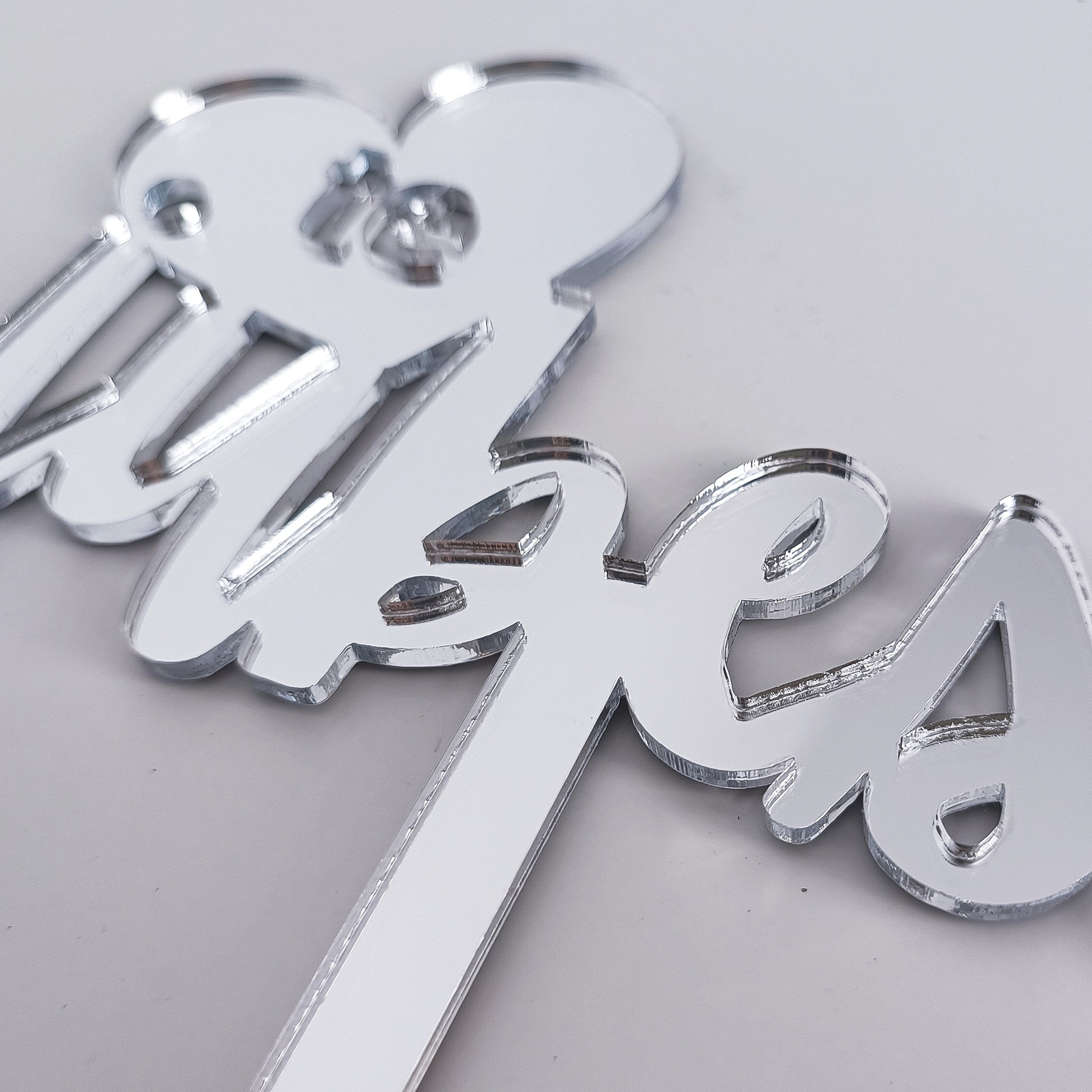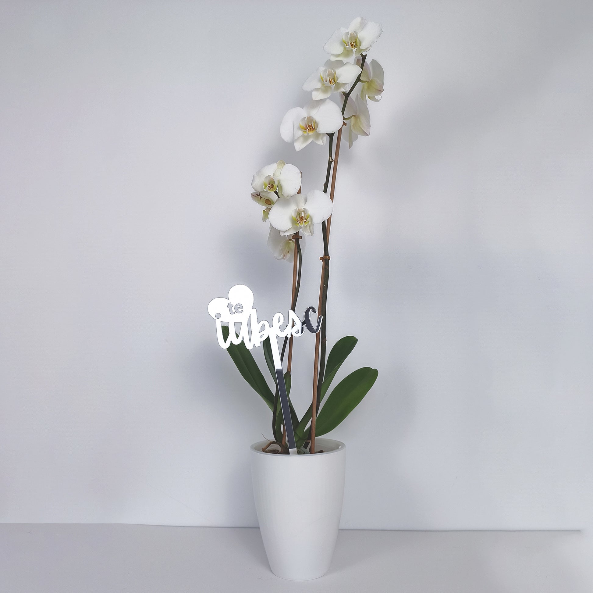 Acest detaliu de lux îmbină simbolul clasic al inimii cu un font caligrafic modern, oferind o notă finală sofisticată oricărui cadou. Tija lungă este elementul cheie care permite poziționarea mesajului deasupra florilor, asigurând o vizibilitate optimă și un impact vizual maxim. Fabricat din plexiglas tip oglindă, topper-ul reflectă spectaculos lumina și culorile buchetului, transformând un simplu gest într-o experiență memorabilă.