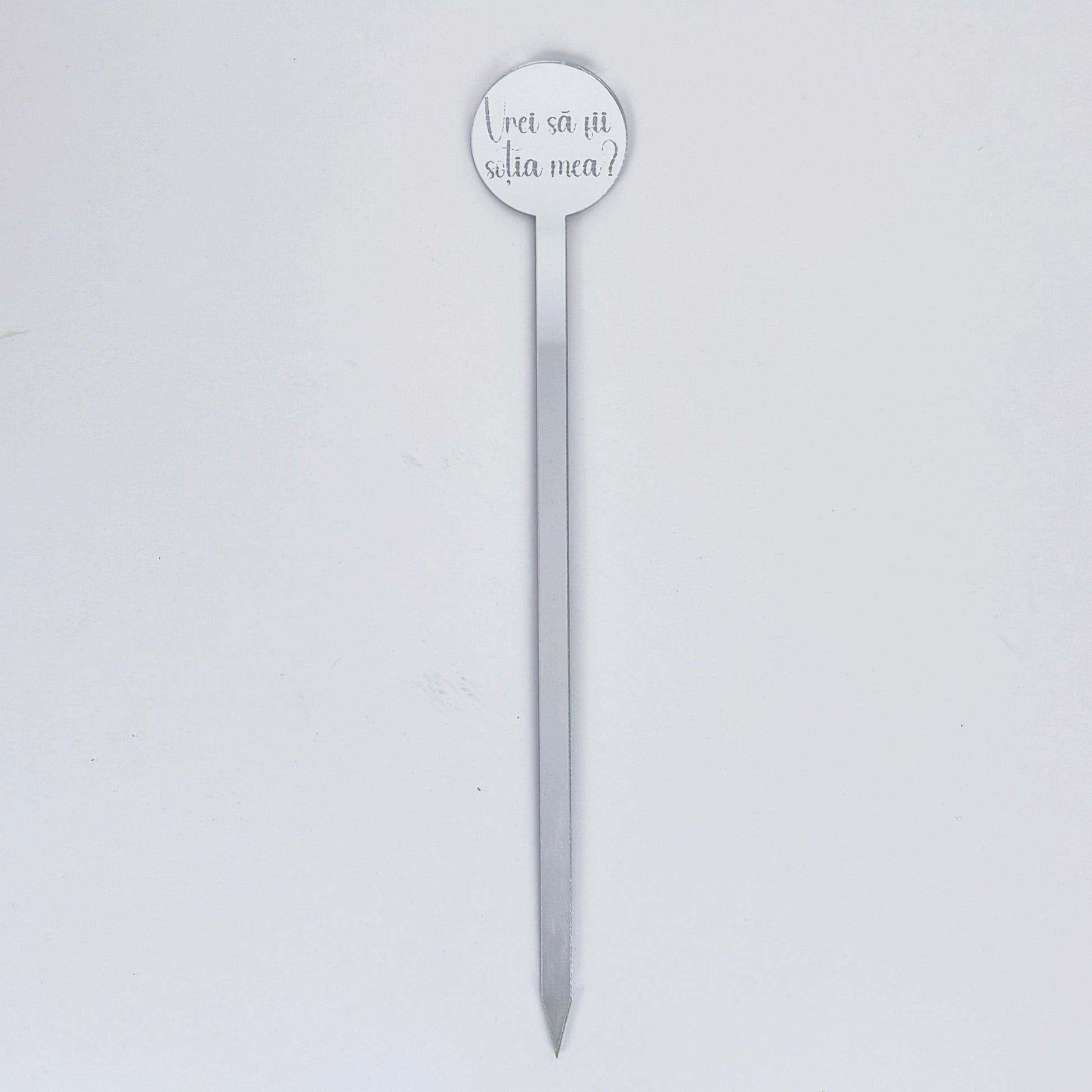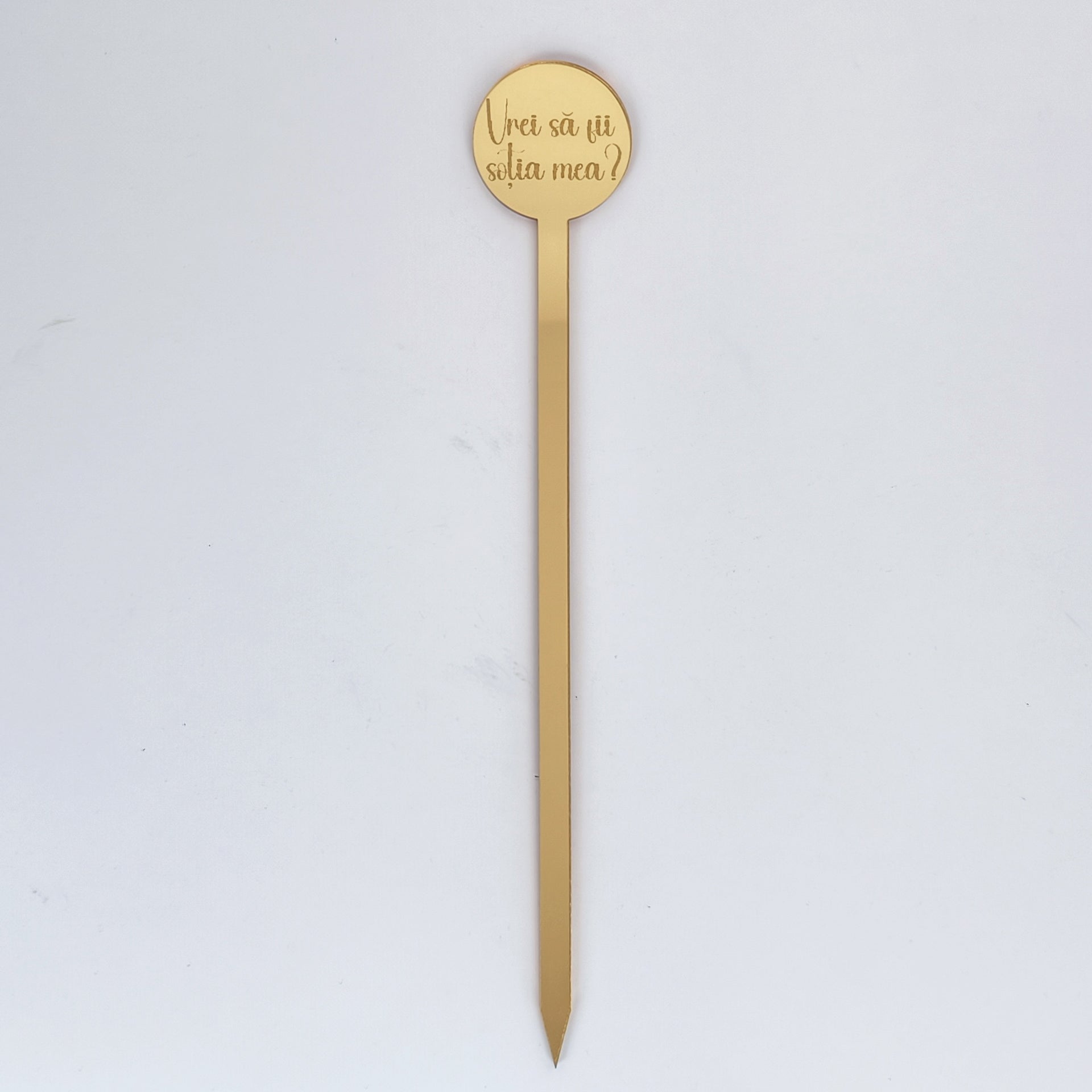 Transformă cel mai important „Da” într-o amintire vizuală de neuitat cu topper-ul „Vrei să fii soția mea?”. Acest accesoriu premium este conceput special pentru a adăuga o notă de lux și emoție momentului cererii în căsătorie, fiind piesa centrală ideală pentru buchetele de logodnă care merită un finisaj „mai fain”.